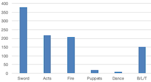 This does add up to more than 500 as there are shows we do more than one thing.