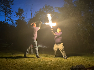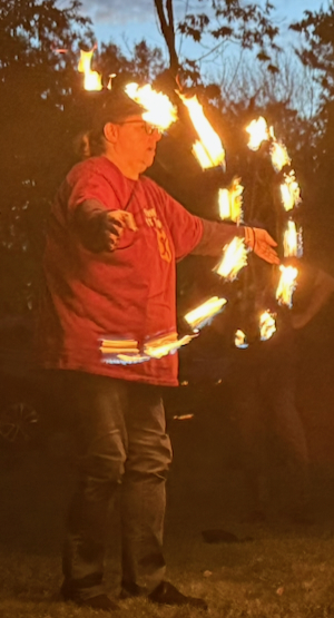 Oct. 19th, 2025 11:19 amEvery year a friend of ours has a chili cook off contest at their house and we do a fire show as the sun sets.